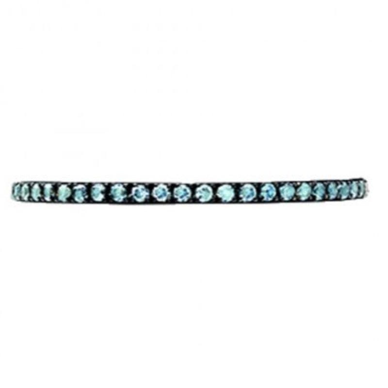 18K White gold stackable containing blue topaz micro pave set in a full anniversary style setting for a total carat weight of 0.28Cts. Finger size 6